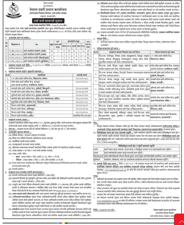 नेपाल प्रहरीले रिक्त पदपूर्तिका लागि आवेदन आह्वान गरेको छ । नेपाल प्रहरीका अनुसार कार्यालय सहयोगी रिक्त पदमा पदपूर्ति गर्नु परेकाले आवेदन आह्वान खुल्ला गरिएको हो ।