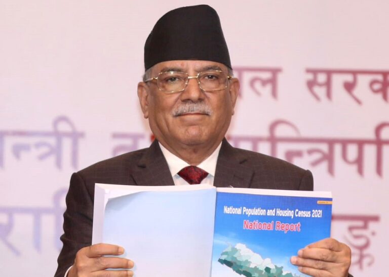 काठमाडौँ । राष्ट्रिय जनगणना २०७८ को प्रतिवेदन सार्वजनिक गरिएको छ । शुक्रबार प्रधानमन्त्री पुष्पकमल दाहाल प्रचण्डले राष्ट्रिय जनगणना २०७८ को प्रतिवेदन सार्वजनिक गरेका हुन् ।