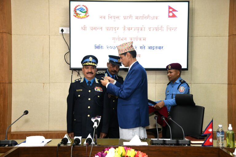 नवनियुक्त प्रहरी महानिरीक्षक बसन्तबहादुर कुँवरलाई दर्ज्यानी प्रदान गरिएको छ। सिंहदरवारस्थित गृहमन्त्रालय सिंहदरबारमा आइतबार आयोजित विशेष समारोहमा गृहसचिव विनोदप्रकाश सिंहले प्रहरी महानिरीक्षक कुँवरलाई दर्ज्यानी चिह्न प्रदान गरेका हुन्।