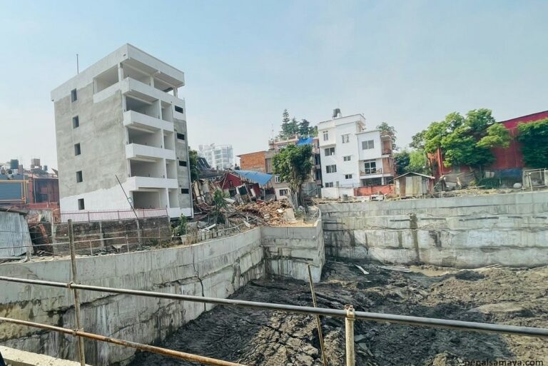 अपार्टमेन्ट वरपरका घर भासिएपछि स्थानीयको भागाभाग भएको थियो। निर्माणाधीन अपार्टमेन्ट वरपरका घरहरू एक तला जति भासिएका छन्।