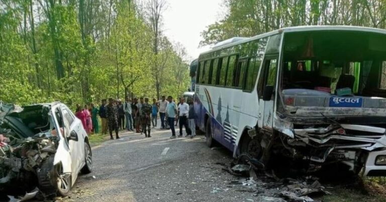 कोहलपुरका प्रहरी नायब उपरीक्षक सुन्दर तिवारीका अनुसार बाँकेवाट सुर्खेततर्फ जाँदै गरेको उनीहरु सवार कार बाँकेको राप्तीसोनारी गाउँपालिका–८ मुगुवा खोलानजिकै बससँग ठोक्किन पुगेको थियो।