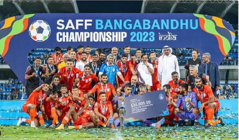 भारतले १४ औँ संस्करणको साफ च्याम्पियनसिप फुटबलको उपाधि जितेको छ। मंगलबार बेंगलोरमा भएको फाइनल खेलमा कुवेतलाई पेनाल्टी सुटआउटमा ५–४ ले हराउँदै भारतले नवौँपटक साफ च्याम्पनियनसिपको उपाधि उचालेको हो।
