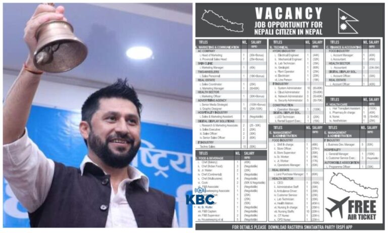 रास्वपाले विदेशमा रहेका युवाका लागि नेपालमा आकर्षक तलबसहित विभिन्न क्षेत्रमा रोजगारीका लागि आवदेन आह्वान गरेको छ। विभिन्न पदमा १५ हजार देखि एक लाख ५० हजारसम्म तलब पाइने १६६ जनाका लागि विज्ञापन आह्वान गरिएको छ।