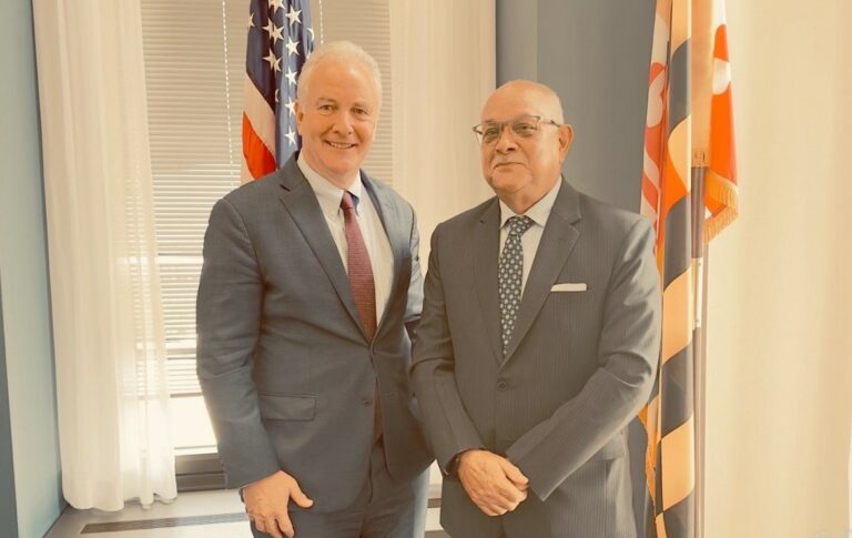 वासिङ्गटन डिसी । अमेरिकी उपल्लो सदनका सिनेटर क्रिसभ्यान होलानसँग अमेरिकाका लागि नेपालका राजदूत श्रीधर खत्रीले क्यापिटल हिलमा भेटघाट गरेका छन्।