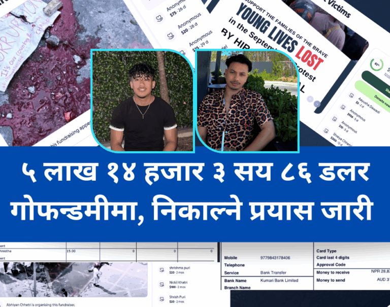 नेपालमा सेप्टेम्बर ८ तारिख भएको जेन्जी आन्दोलनका क्रममा ज्यान गुमाउनेका परिवार र घाइतेको उपचारका लागि अष्ट्रेलियामा संकलन गरिएको ठूलो सहयोग राशी संकलनकर्ताहरु केविसीखबरको सम्पर्कमा आएका छन् ।