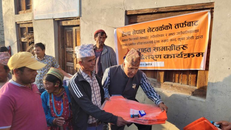 बाजाङ, रुकुम पश्चिम, जाजरकोटका भूकम्प पीडितलाई खाद्यान्न, कम्बल, ट्रिपाल तथा आपतकालीन सहयोग।