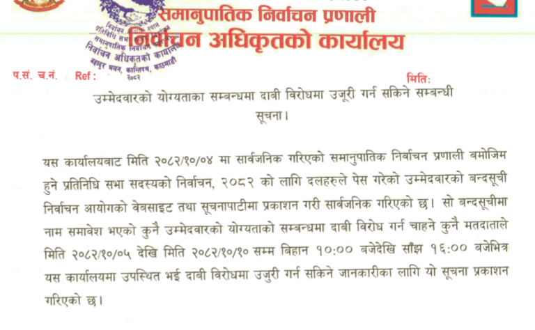 अर्कोतर्फ राप्रपामा खुश्बु ओलीको नामलाई लिएर महिलाहरुले विरोध जनाएका छन् । रास्वपामा टासी ल्हाज्मोको नाम हटाइएपछि तनावको माहोल बनेको छ । अर्कोतर्फ, महिला अभियन्ताहरुले उम्मेद्वारीमा ३३ प्रतिशत नभए अलग्गै स्वतन्त्र उठ्न आह्वान गरिरहेका छन् । एमालेभित्र विवादित पूर्वराजदूत लक्की शेर्पालाई समानुपातिकसूचिको माथिल्लो नम्बरमा राखिएकोमा पनि धेरैले आश्चर्य व्यक्त गरेका छन् । अर्कोतर्फ, पत्रकार ऋषि धमला यतिबेला आफ्नो पूरै शक्ति लगाएर पत्नीलाई समानुपातिक सूचिबाट सांसद बनाउन दौडधुप गरिरहेका छन् । उनले केही समय अघि दिएको भाषण चर्चा लगायक थियो । दावी विरोधको समय दिँदै निर्वाचन आयोगले तत्कालै आह्वान गरेको छ । हेर्नुहोस् पूरा सूचि