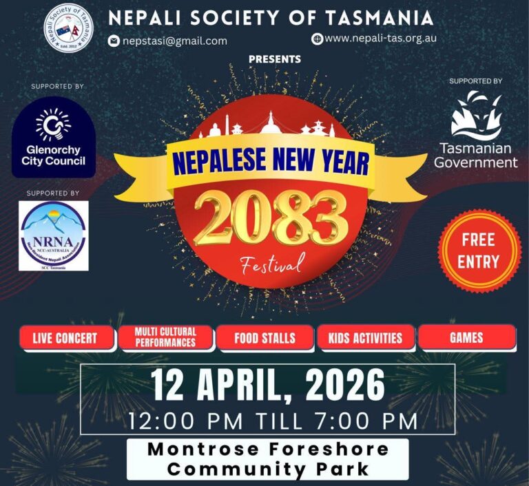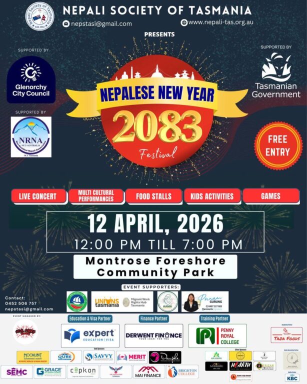 नेपाली सोसाइटी अफ तस्मानियाको आयोजनामा नेपाली नयाँ वर्ष २०८३ को अवसरमा भव्य तथा बहुसांस्कृतिक उत्सव आयोजना हुने भएको छ। तस्मानिया सरकार तथा ग्लेनोर्ची सिटी काउन्सिलको सहयोगमा उक्त कार्यक्रम आगामी आइतबार, १२ अप्रिल २०२६ मा मोन्ट्रोज फोरशोर पार्क, मोन्ट्रोज, तस्मानिया मा सम्पन्न हुने भएको हो।