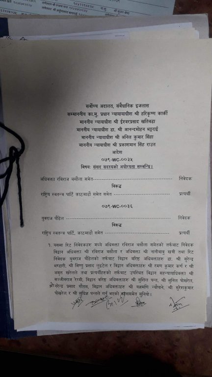 कामु प्रधानन्यायाधीश हरिकृष्ण कार्कीसहित न्यायाधीशहरु ईश्वरप्रसाद खतिवडा, डा. आनन्दमोहन भट्टराई, अनिलकुमार सिन्हा र प्रकाशमानसिंह राउतको संवैधानिक इजलासले लामिछानेको नागरिकताको विषयमा परेको रिट निवेदनमा अन्तरिम आदेश दिन अस्वीकार गरेको हो ।