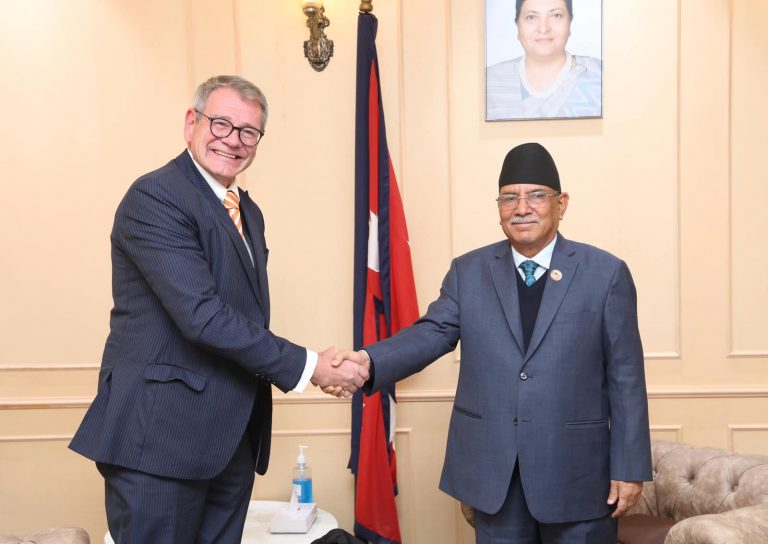 प्रधानमन्त्री पुष्पकमल दाहाल प्रचण्डसँग नेपालका लागि जर्मन राजदूत थोमस प्रिन्सले भेट गरेका छन् । प्रिन्सले बिहीबार दिउँसो प्रधानमन्त्री तथा मन्त्रिपरिषद्को कार्यालय सिंहदरबारमा पुगेर प्रधानमन्त्रीसँग भेट गरेका हुन् ।
