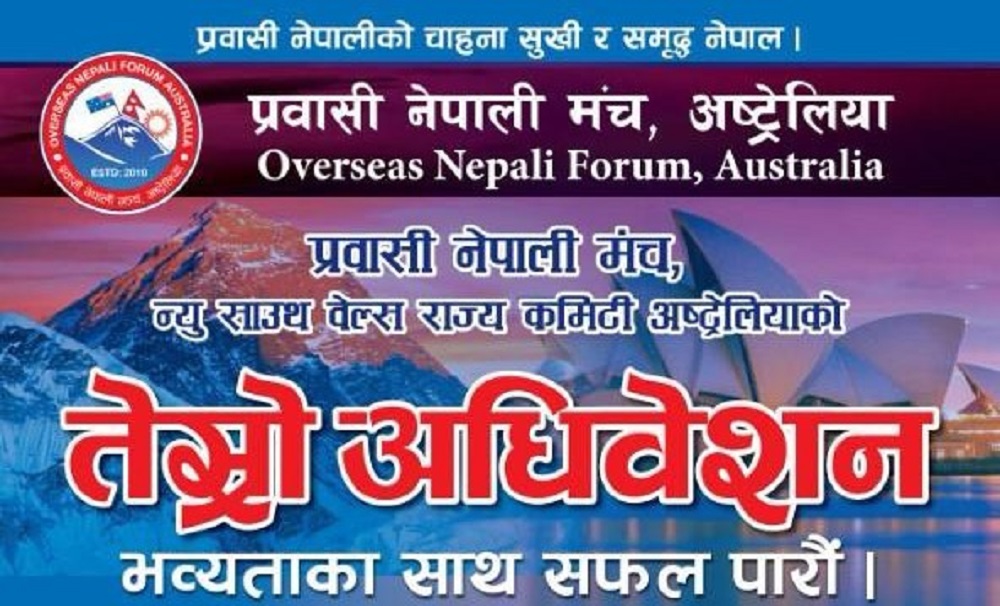 मेलबर्न, अष्ट्रेलिया । प्रवासी नेपाली मञ्च (ओएनएफ) एनएसडब्लु राज्य समितिको तेस्रो अधिवेशन आगामी मार्च २ मा सिड्नीमा हुने भएको छ। सम्मेलन स्थानिय झरना फङ्सन सेन्टर, रकडेल, सिड्नीमा मञ्चका अन्तर्राष्ट्रिय कमिटीका उपाध्यक्ष तथा एनआरएनए आईसिसिका सल्लाहकार रमेश पाण्डेको प्रमुख आतिथ्यमा हुने भएको छ। मञ्चका एनएसडब्लु अध्यक्ष कृष्ण सापकोटाले अधिवेशनले विगतको कामको समिक्षा र केहि भावी योजना…