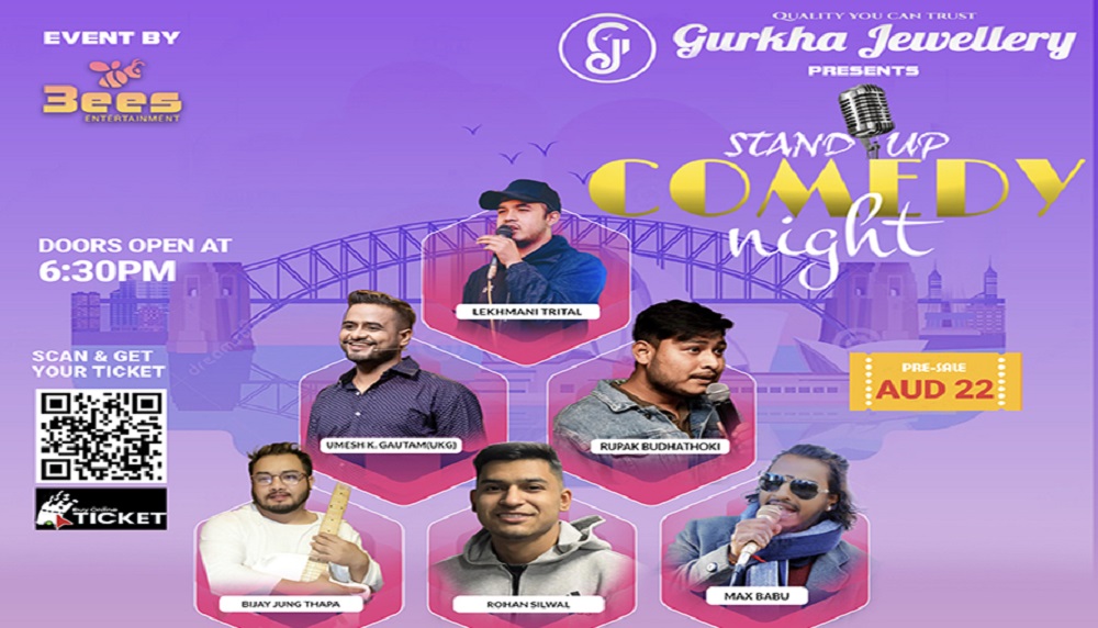मेलबर्न, अष्ट्रेलिया गाईजात्राको अवसर पारेर अष्ट्रेलियाको सिड्नीमा नेपग्याजम कमेडी नाईट आयोजन हुने भएको छ। आगामी सेप्टेम्बर ३ मा सिड्नीको अबर्नस्थित सफायर फङ्सन सेन्टरमा थ्री बिज इन्टरटेन्मेन्टले नेपग्याजम कमेडी नाईट आयोजना गर्न लागेको हो। कार्यक्रममा कमेडियन लेखमणी त्रिताल (रमेश अंकलको छोरो), उमेशकुमार गौतम (युकेजी), रुपक बुढाथोकी, रोहन सिलवाल, म्याक्स बाबु, बिजयजंग थापा लगायतका कलाकारहरुको प्रस्तुती रहने…