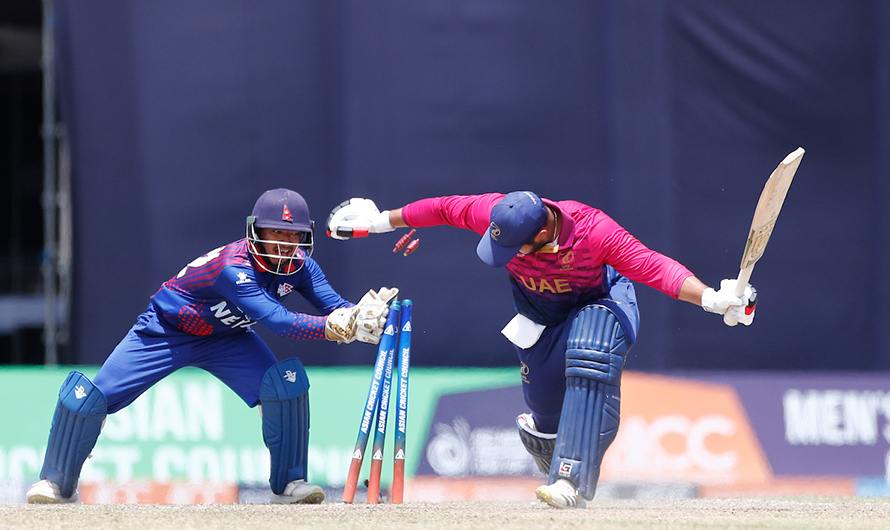 काठमाडौँ । श्रीलंकामा जारी एसीसी इमर्जिङ टिम्स एसिया कपको अन्तिम खेलमा नेपालले युनाइटेड अरब इमिरेट्स (यूएई) लाई पराजित गरेको छ। समूह ‘बी’ अन्तर्गतको खेलमा नेपालले यूएईलाई ३ विकेटले पराजित गरेको हो। यूएईले दिएको १५८ रनको लक्ष्य नेपालले २३ ओभरमा ७ विकेट गुमाएर पूरा गरेको हो। नेपाललाई जित दिलाउन कुशल भुर्तेलले सर्वाधिक ७१ रन तथा देव…