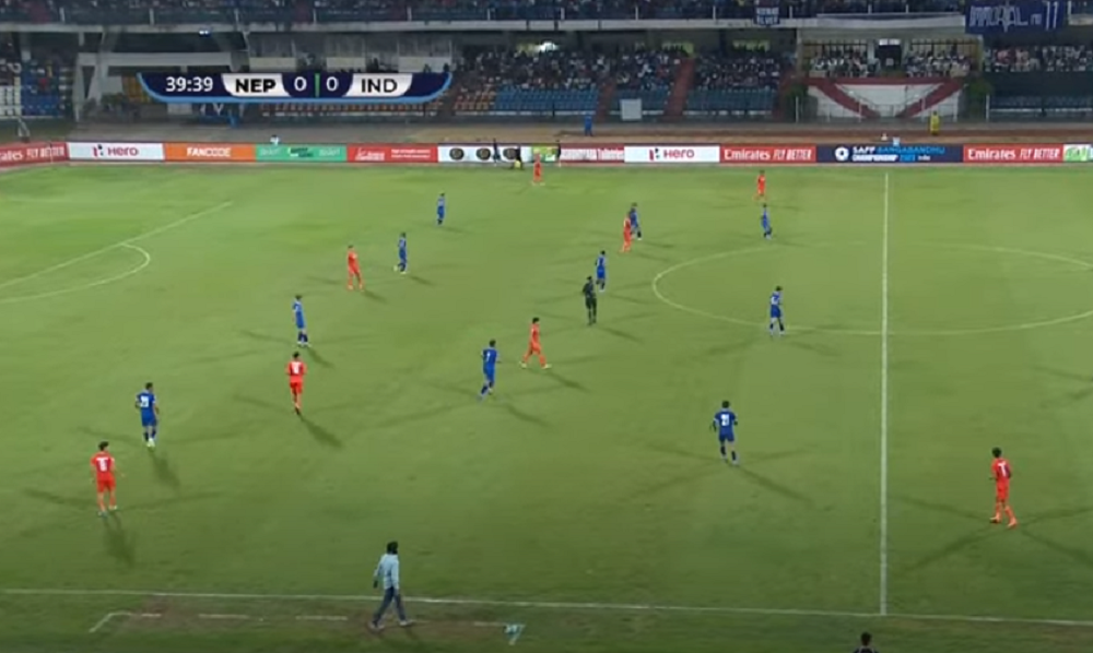 कामठाडौँ । साफ च्याम्पियनसिप अन्तर्गत जारि समूह चरणको दोस्रो खेलमा नेपाल र भारतले पहिलो हाफमा गोलरहित बराबरी सकिएको छ। भारतको बैङ्लुरुस्थित कान्तारावा स्टेडियममा जारि खेलको पहिलो हाफमा दुवै टिमले गोलगर्ने अवसरहरु सदुपयोग गर्न नसक्दा बराबरी खेलेका हुन्।