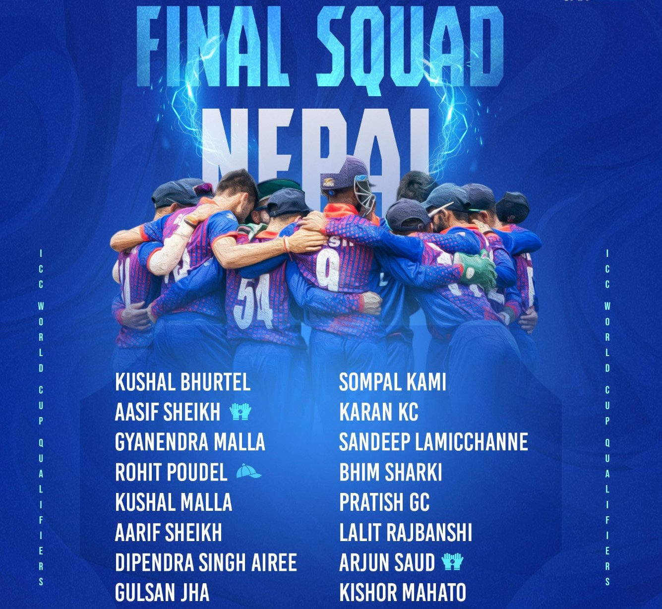 काठमाडौँ । नेपाल क्रिकेट संघ (क्यान)ले आगामी महिना जिम्बावेमा हुने आइसिसी विश्वकप एकदिवसीय छनोटको लागि १६ सदस्य टोली घोषणा गरेको छ। क्यानका अनुसार रोहित पौडेलको नेतृत्वका १६ सदस्सीय टोलीले एकदिवसीय छनौट खेल्ने पक्का गरेको हो। नेपालले एसिसी प्रिमियर कपमा रहेका १४ खेलाडीलाई नै निरन्तरता दिएको क्यानले अर्जुन साउद र किशोर महतोले टोलीमा फर्काएको छ। एक…