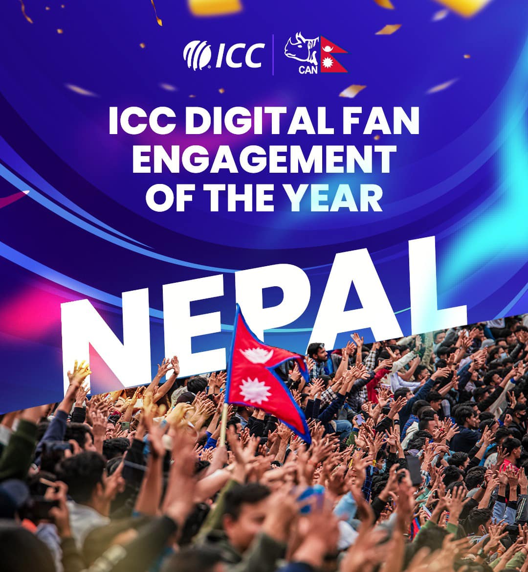 नेपालले अन्तर्राष्ट्रिय क्रिकेट काउन्सिल९आईसीसी०को ‘डिजिटल फ्यान इन्गेजमेन्ट अफ दी इयर अवार्ड’ जितेको छ। क्रिकेटका २१ एसोसिएट राष्ट्रहरूलाई पछि पार्दै नेपालले उक्त अवार्ड जितेको हो। क्रिकेटका लोभलाग्दा दर्शक रहेको नेपाल यसअघि एसिया क्षेत्रबाट यो अवार्डका लागि छानिएको थियो। आईसीसीले नेपाली क्रिकेटको रिच फेसबुकमा ४०० प्रतिशतले वृद्धि भएको उल्लेख गरेको छ। नेपाल क्रिकेट संघ ९क्यान०का सचिव पारस…