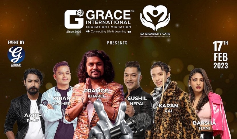 मेलबर्न अष्ट्रेलिया । गिरिश इभेन्ट एण्ड इन्टरटेनमेन्टले एडीलेडमा भव्य कन्सर्ट गर्न लागेको छ । फेब्रवरी १७ तारिख शुक्रबारका दिन हुने उक्त कन्सर्टमा अष्ट्रेलिया टुरमा रहेको भ्वाइस अफ नेपालको टीमले सांगीतिक प्रस्तुति दिनेछ । ग्रेस इन्टरनेस्नल एजुकेशन माइग्रेसन मुख्य प्रयोजक रहेको उक्त सांगीतिक कार्यक्रममा भ्वाइस अफ नेपाल म्युजिक नाइटमा गायक प्रमोद खरेल, दि भ्वाइस अफ नेपाल…