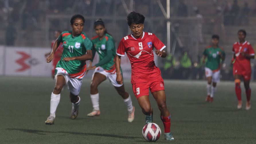 काठमाडौँ । दक्षिण एसियाली फुटबल महासंघ ९साफ० महिला यु–२० च्याम्पियनसिप फुटबल प्रतियोगिताको फाइनलमा नेपालले दोस्रो स्थानमा चित्त बुझाउनु परेको छ । बंगलादेशले ढाकास्थित विर श्रेष्ठ शहिद सिपाही मुस्तफा कमल स्टेडियममा भएको फाइनल भिडन्तमा नेपालले दोस्रो स्थानमा चित्त बुझाउनु परेको हो । बिहीबार साँझ घरेलु टोली बंगलादेशसँग भिडेको नेपाल ३–० गोलले पराजित हुन पुग्यो । बंगलादेशले…