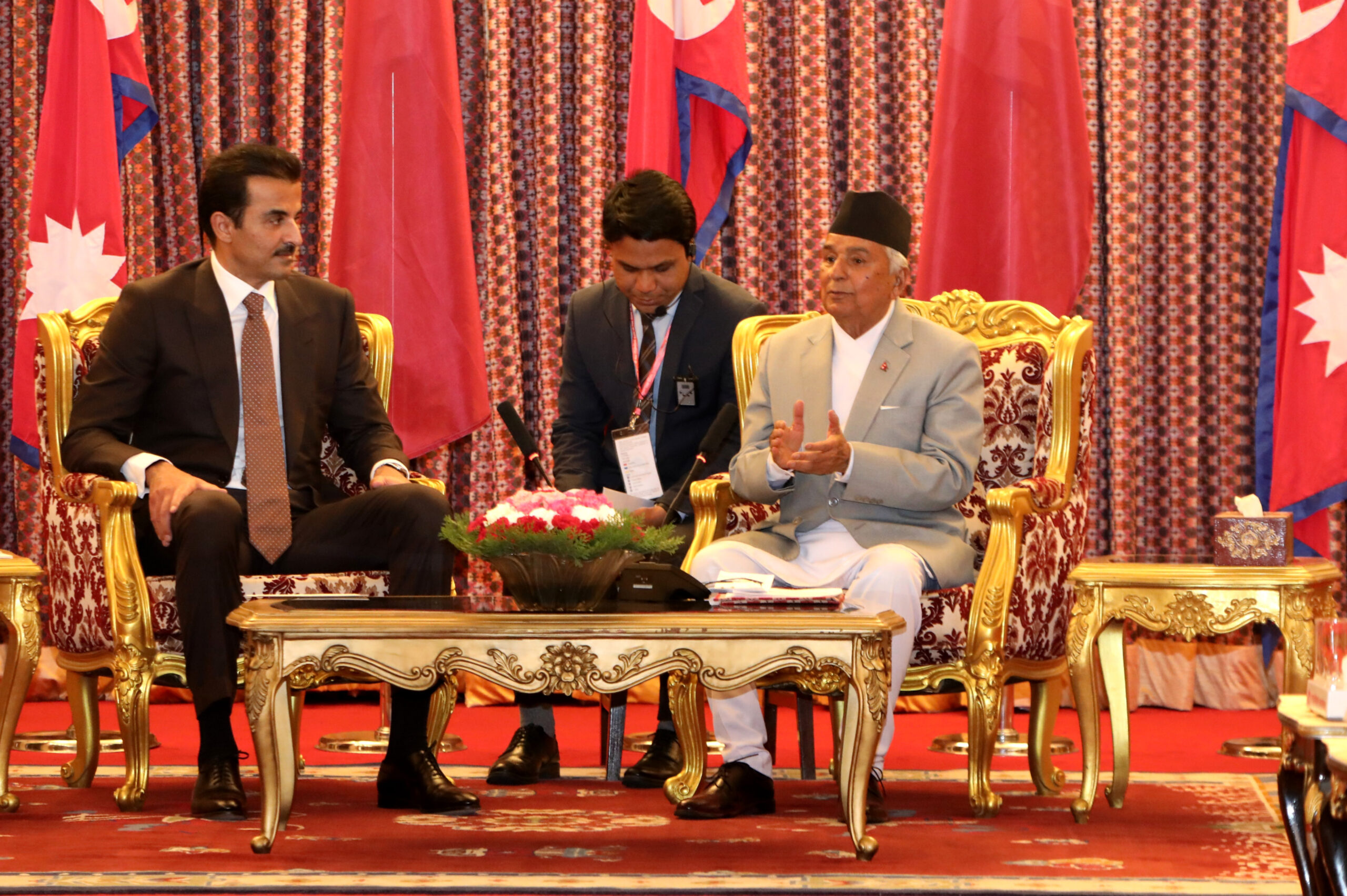 काठमाडौँ । राष्ट्रपति रामचन्द्र पौडेल र कतारका अमिर शेख तमिम बिन हमाद अल थानीबीच राष्ट्रपति कार्यालय शीतल निवासमा भेटवार्ता सुरु भएको छ। अपराह्न कतारका अमिर राष्ट्रपति निवास शीतल निवास पुग्दा राष्ट्रपति पौडेलले उनलाई स्वागत गरेका थिए। शीतल निवासको गण्डकी हलमा सुरु भएको भेटवार्तामा उपप्रधानमन्त्री एवं परराष्ट्रमन्त्री नारायणकाजी श्रेष्ठ, सवारी व्यवस्थापनको जिम्मेवारीमा रहेका ऊर्जा, जलस्रोत तथा…