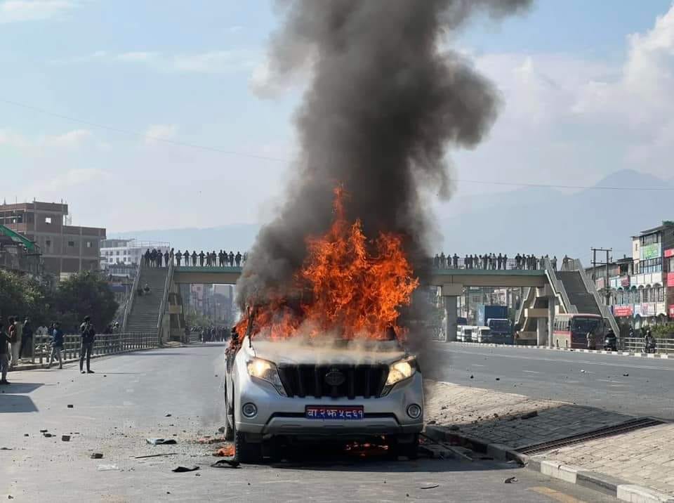 काठमाडौं । रोजगार अनुमति प्रणाली (ईपीएस) परीक्षाको विषयलाई लिएर प्रदर्शनमा उत्रिएका युवाहरूले एक जना मन्त्रीको गाडीमा आगजनी गरेका छन्। प्रदर्शनमा उत्रिएका युवाहरुले ललितपुरको बालकुमारीमा भौतिक पूर्वाधार तथा यातायात मन्त्री प्रकाश ज्वालाले प्रयोग गरेको गाडीमा आगजनी गरेको ललितपुर प्रहरीले जानकारी दिएको छ। उनीहरुले बा २ झ ५८६१ नम्बरको गाडीमा आगजनी गरेका हुन्। ललितपुर प्रहरी प्रमुख एसएसपी…