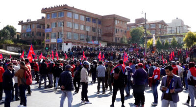 काठमाडौँ । मेडिकल व्यवसायी तथा गणतन्त्र विरोधी अभियन्ता दुर्गा प्रसाईंको घरलाई सुरक्षाकर्मीले घेरा हालेर राखेका छन्। प्रसाईं घर भक्तपुर पुगेर प्रहरीले वरपरबाट ठूलो संख्यामा घेरा हालेको छ। आज शुक्रबार पनि प्रसाईंले तीनकुनेमा प्रदर्शन गर्ने बताएपछि उनलाई घरबाटसमेत निस्कन नदिई आफ्नै घरमा नजरबन्द गराउने उदेश्यसहित प्रहरीले घेरा हालेको बताइएको छ। गणतन्त्र विरोधी अभियानमा लागेका प्रसाईं समूहका…