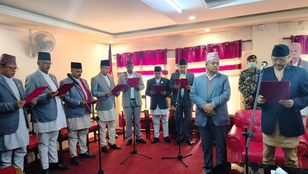 काठमाडौँ । बागमती प्रदेशका मुख्यमन्त्री शालिकराज जम्कट्टेलले आफ्नो मन्त्रिपरिषदलाई पूर्णता दिएका छन्। ११ सदस्यीय मन्त्रिपरिषदलाई उनले बुधबार बाँकी मन्त्री नियुक्त गरेर पूर्णता दिएका हुन्। उनले बुधबार नियुक्त गरेका मन्त्रीहरुले प्रदेश प्रमुख यादवचन्द्र शर्माबाट पद तथा गोपनीयताको शपथसमेत लिइसकेका छन्। जम्कट्टेलको मन्त्रिपरिषदमा एमालेका जगन्नाथ थपलिया आर्थिक मामिला तथा योजना मन्त्री, केशवप्रसाद पोखरेल कृषि तथा पशुपन्छी विकास…