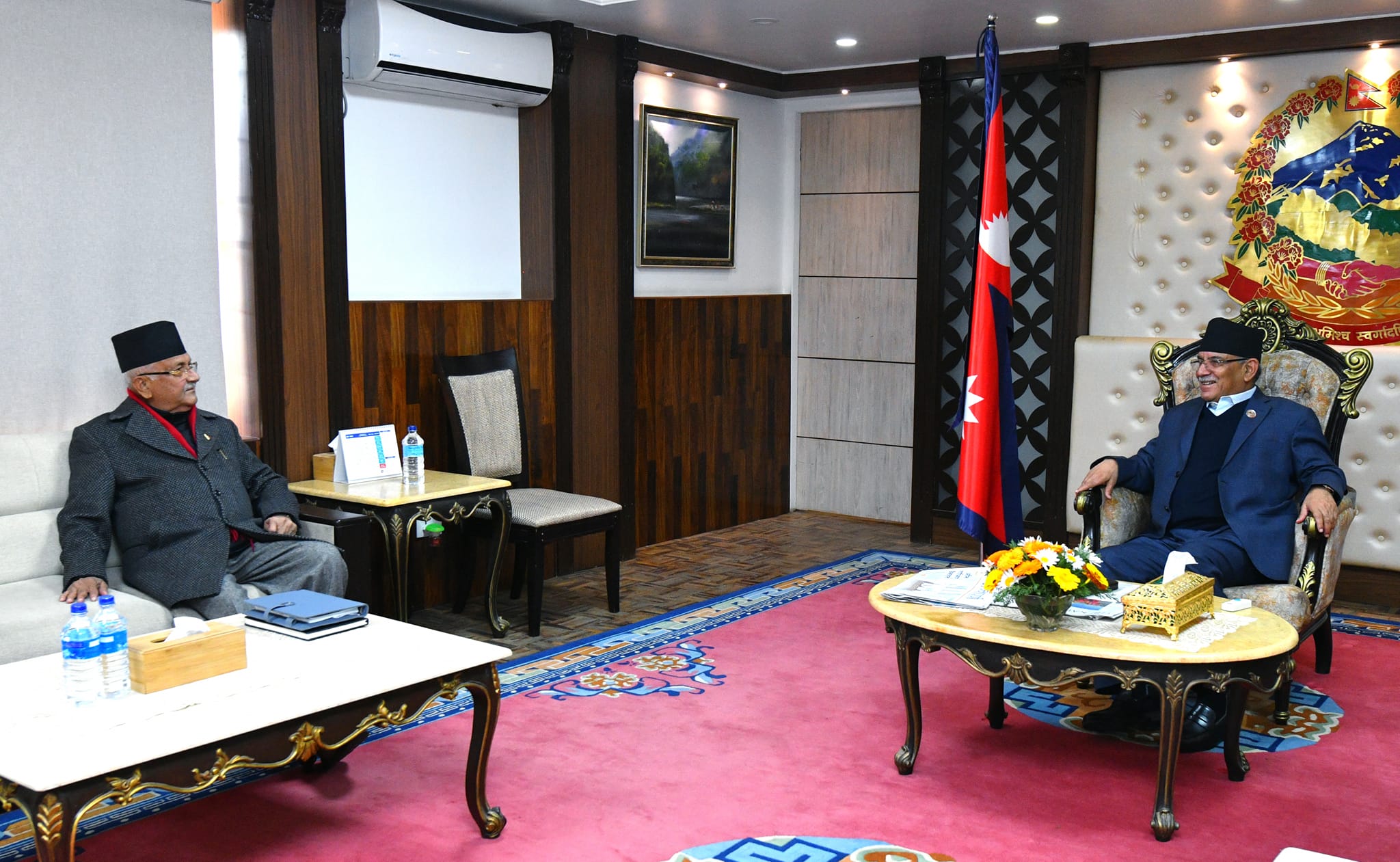 काठमाडौँ । प्रधानमन्त्री पुष्पकमल दाहाल ‘प्रचण्ड’ र नेकपा (एमाले)का अध्यक्ष केपी शर्मा ओलीबीच भेटवार्ता भएको छ। प्रधानमन्त्री निवास बालुवाटारमा आज बिहान भएको सो भेटमा सरकार विस्तार, सभामुखको निर्वाचनलगायत विषयमा परामर्श भएको प्रधानमन्त्रीको सचिवालयले जानकारी दिएको छ। आगामी माघ ५ गते प्रतिनिधिसभाको सभामुखको निर्वाचन हुँदैछ। नेपालको संविधानको धारा ९१ को उपधारा (१) मा प्रतिनिधिसभाको पहिलो बैठक…