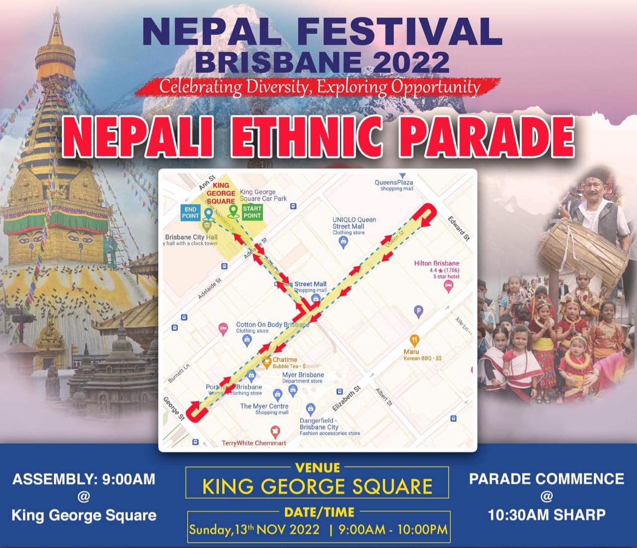 ब्रिसबेन, अष्ट्रेलिया । अष्ट्रेलियाको ब्रिसबेनमा आईतबार १३ नोभेम्बरमा आयोजना हुने नेपालफेष्टिभलको सम्पूर्ण तयारी पूरा भएको छ । नेपाल फेष्टिभलमा सहभागी हुने अतिथि आउने क्रम जारी छ । गायक दिपक बज्राचार्य एवं उनको रिदम व्याण्ड शुक्रबार नै ब्रिसबेन पुगेको छ भने अष्ट्रेलियाका लागि नेपाली राजदूत कैलाशराज पोखरेल पनि शनिबार ब्रिसबेन पुगिसक्नुभएको छ । नेपाल फेष्टिभलको सुरुवात…