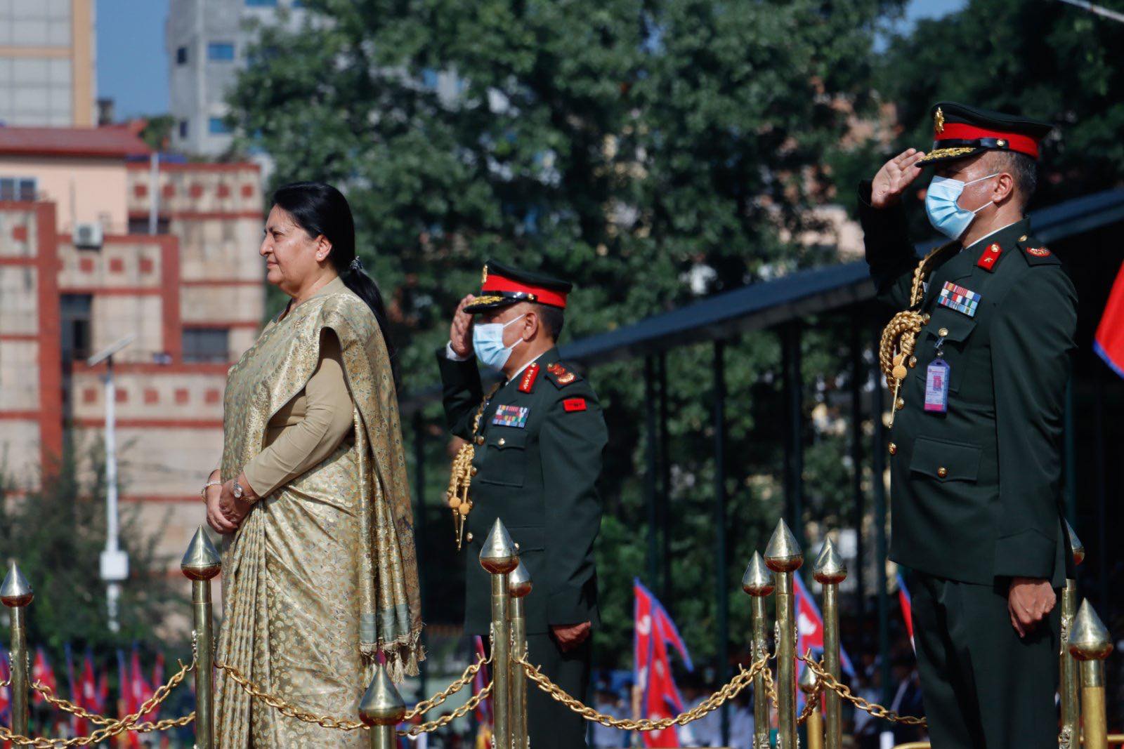 काठमाडौँ । राष्ट्रपति विद्यादेवी भण्डारी आठौँ संविधान दिवस तथा राष्ट्रिय दिवसका अवसरमा आज मूल समारोह समितिद्वारा सैनिक मञ्च, टुँडिखेलमा आयोजित समारोहमा सहभागी भएकी छन् । समारोहमा उपराष्ट्रपति नन्दबहादुर पुन, प्रधानमन्त्री शेरबहादुर देउवा, कामु प्रधानन्यायाधीश दीपककुमार कार्की, सभामुख अग्निप्रसाद सापकोटा, राष्ट्रियसभाका अध्यक्ष गणेशप्रसाद तिमिल्सिना, मन्त्रीगण, संवैधानिक निकायका प्रमुख, सरकारका उच्च अधिकारी, मित्रराष्ट्र तथा नियोगका प्रमुख र…