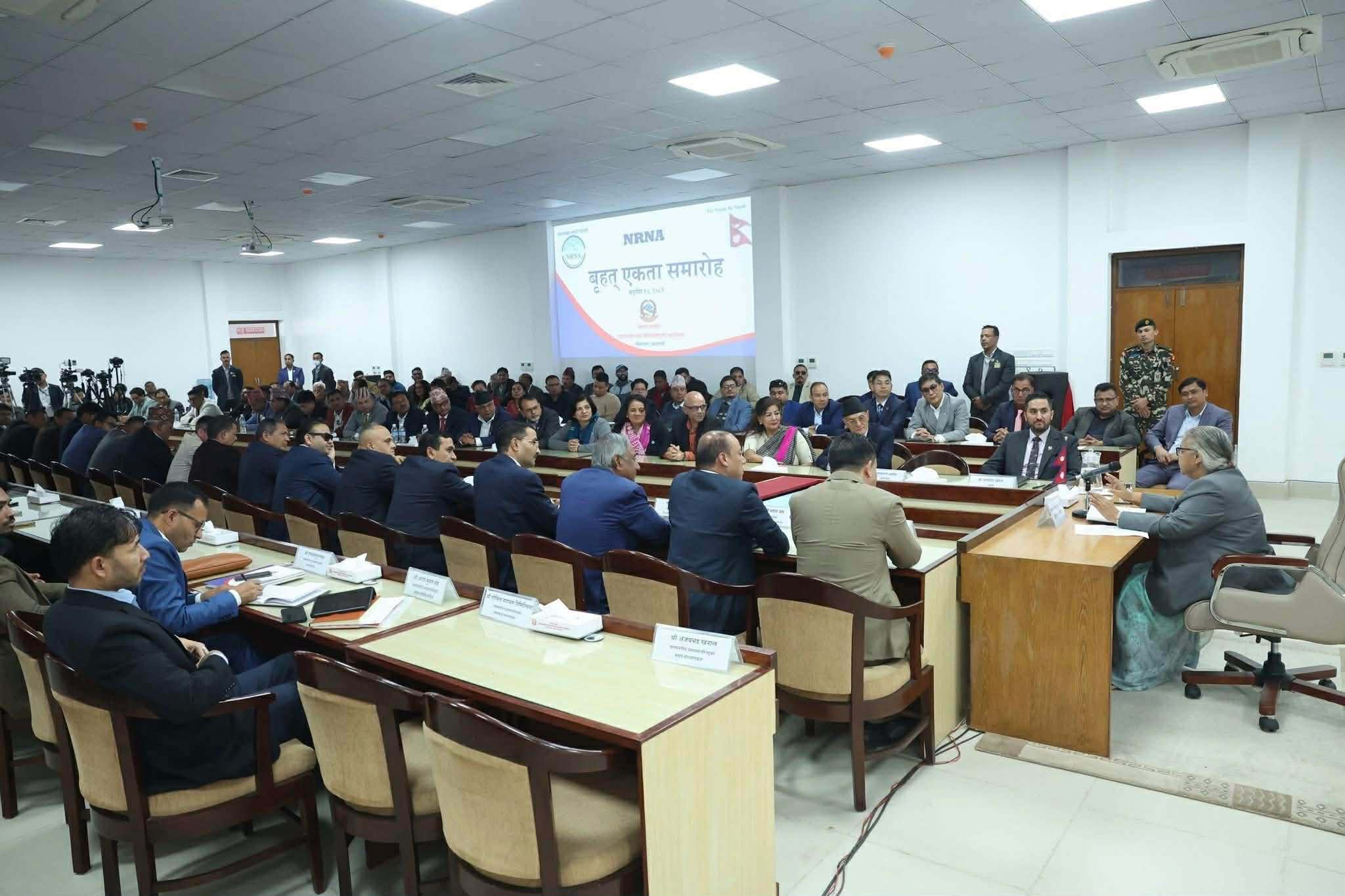 गैरआवासीय नेपाली संघको एकता प्रधानमन्त्री सुशीला कार्कीको उपस्थितिमा दुई अध्यक्षहरुले सहमतिपत्रमा हस्ताक्षरसहित साटासाट गरेका छन् । यससँगै करिब ५ वर्षदेखिको जुँगाको लडाईं सकिएको छ । निर्वाचनमा सहभागी हुने तर त्यसबाट आएको परिणामलाई नमान्ने, राजनीतिक दलको भ्रातृ संगठनहरुलाई परिचालन गरेर एकअर्कालाई साईजमा ल्याउने खेलमा लागेका सम्पूर्ण विकारहरुलाई छोड्दै अब देशको लागि एनआरएन भन्ने मूलमन्त्रका साथ अघि…
