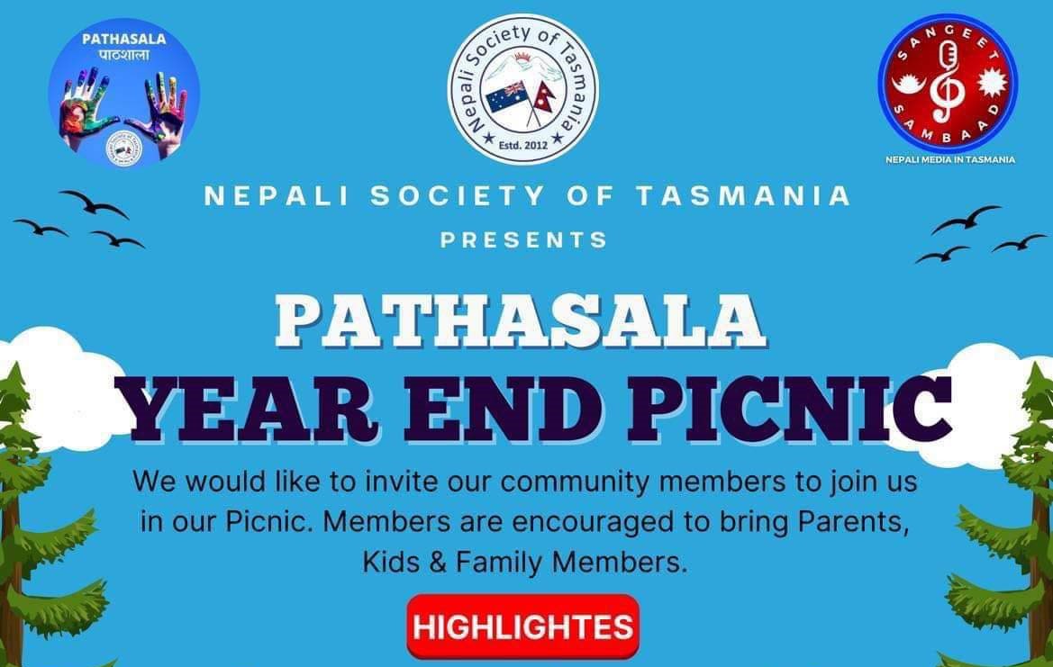 होबार्ट तास्मानिया । नेपाली सोसाइटी अफ तास्मानियाले पाठशाला (नेपाली भाषा स्कुल) पिकनिकको आयोजना गर्ने भएको छ। सोसाइटीले डिसेम्बर २३ तारिखका दिन वनभोज कार्यक्रमको आयोजना गर्न लागेको हो। वनभोज कार्यक्रम रिसडन ब्रुक पार्क, रिसडन भेलमा शनिवार बिहान १० बजेदेखि दिउँसो १ बजेसम्म चल्ने छ। पिकनिकमा खेलकुद कार्यक्रमका साथै मनोरञ्जनात्मक कार्यक्रम पनि रहेको सोसाइटीका अध्यक्ष संसारराज चिमोरियाले…