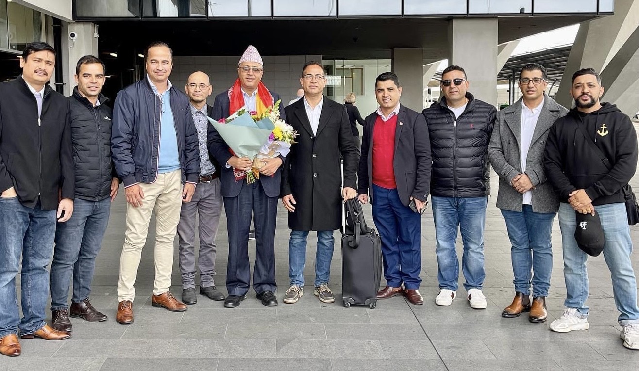 अष्ट्रेलिया । प्रवासी नेपाली मञ्च(ओएनएफ) अष्ट्रेलियाको अगष्ट २७ र २८ सिड्नीमा हुने पाचौ अधिवेशन उद्घाटनका लागि संविधान सभा सदस्य, तथा नेकपा एमालेका विदेश विभाग प्रमुख डा. राजन भट्टराई आज सिड्नी आइपुगेका छन् । भट्टराईलाई सिड्नी एयरपोर्टमा ओएनएफ अन्तरराष्ट्रिय कमिटी सचिव रमेश पाण्डे, ओशियाना इन्चार्ज विनोद श्रेष्ठ, अष्ट्रेलिया अध्यक्ष केशव जोशी लगायतले स्वागत गरेका थिए ।…