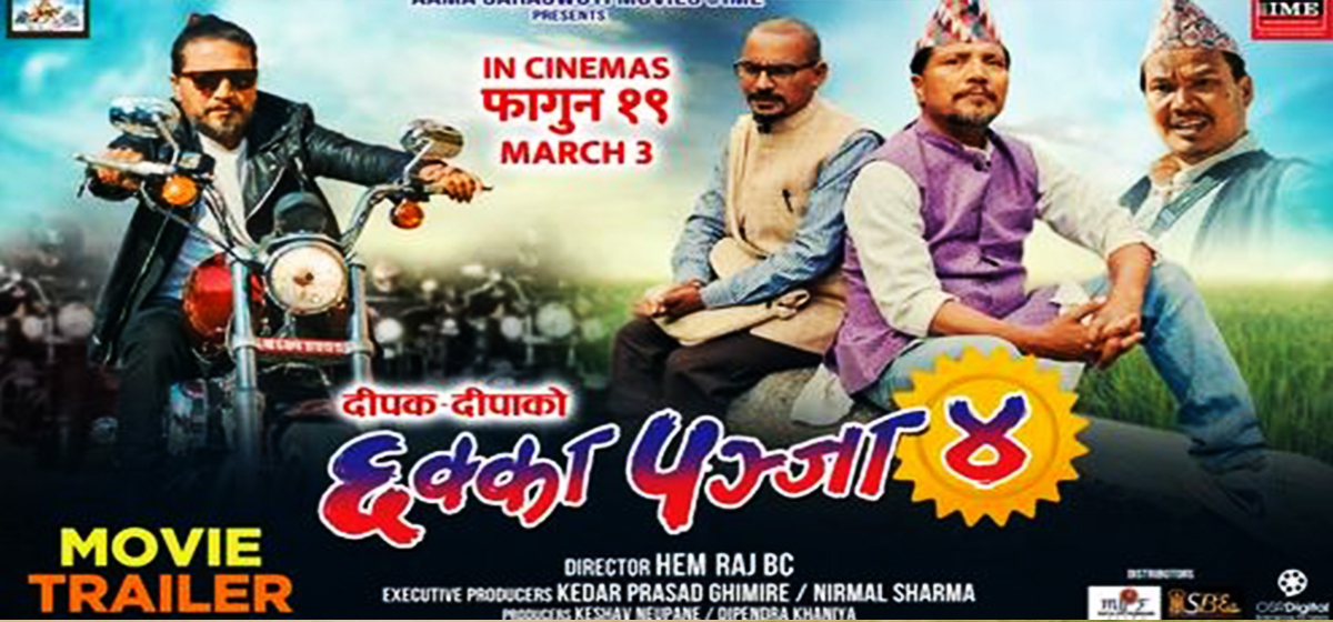 काठमाडौँ । बहुप्रतिक्षित मानिएको चलचित्र ‘छक्का पञ्जा ४’ को ट्रेलर सार्वजनिक भएको छ। शुक्रबार युटुब च्यानल ओसएसआर डिजिटलबाट चलचित्रको ट्रेलर सार्वजनिक गरिएको हो। छक्का पञ्जा ४’ फल्गुन १९ गते दशभर प्रर्दशन हुने भएको छ। फिल्ममा दीपकराज गिरी, दीपा श्री निरौला, निर्मल शर्मा, केदारप्रसाद घिमिरे, बुद्धी तामाङ, निर शाह, राज आचार्य, मलिना जोशी, बेनिसा हमाल, आदि…
