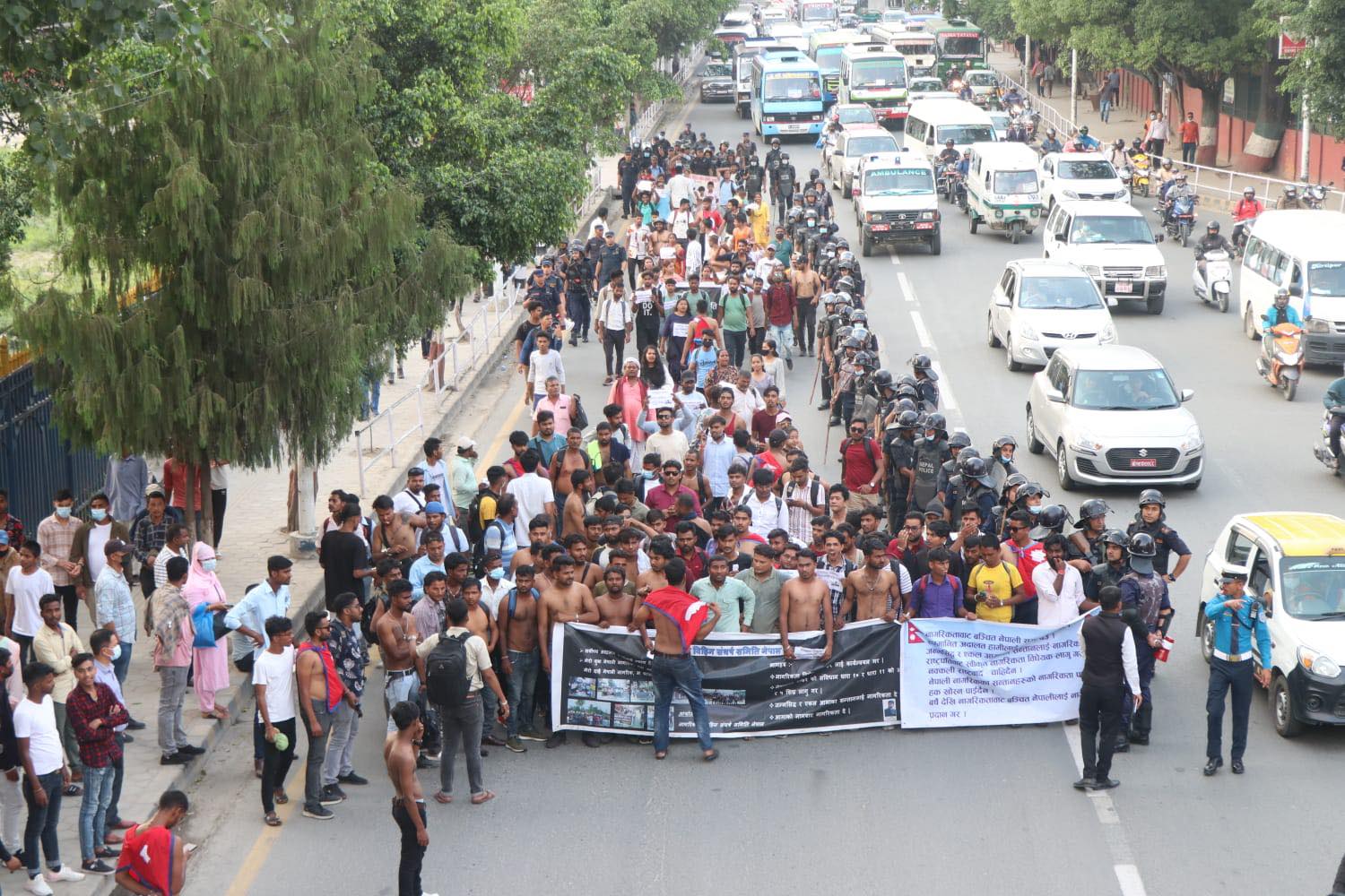 काठमाडौँ । काठमाडौंको माइतीघर मण्डलामा एक जना पुरुषले आत्मदाहको प्रयास गरेका छन् । मंगलबार नागरिकता विधेयक प्रमाणीकरणको विरोधमा प्रदर्शनमा उत्रिएका एक जना प्रदर्शनकारीले आत्मदाहको प्रयास गरेका हुन् । आत्मदाहको प्रयास गरेका ती पुरुषलाई प्रहरीले उद्धार गरेको छ । आत्मदाहको प्रयास गर्दा घाइते भएका ती पुरुषलाई उपचारका लागि वीर अस्पताल पठाइएको प्रहरीले जनाएको छ । पुरुषले…