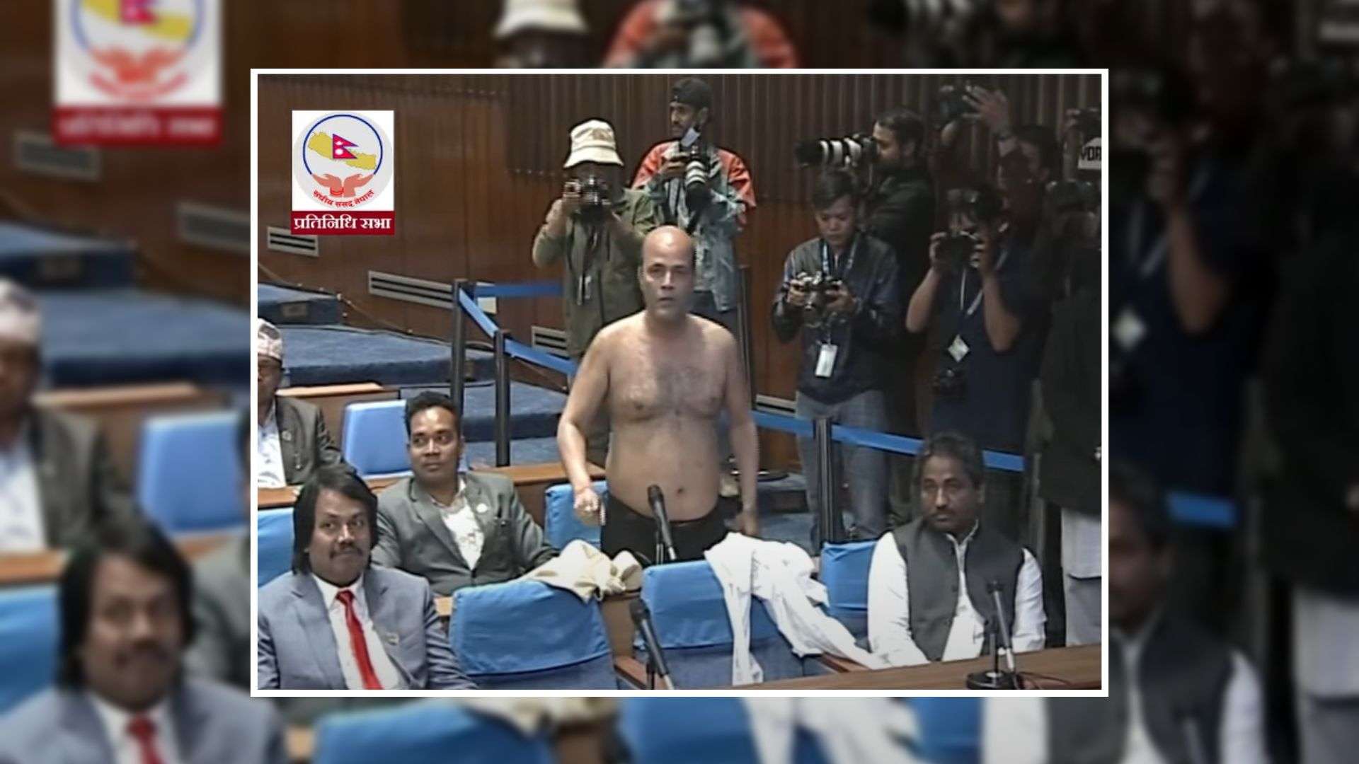 काठमाडौं । प्रतिनिधि सभाको बैठकमा स्वतन्त्र सांसद अमरेशकुरमा सिंहले कपडा खोलेका छन्। सोमबार प्रतिनिधिसभाको बैठकमा सांसद सिंहले आकस्मिक समय माग गरेका थिए । सभामुख देवराज घिमिरेले उनलाई बोल्न नदिएपछि उनले बैठकमा कपडा उतारेर विरोध जनाएका हुन्। सभामुखले समय नदिएपछि त्यसको विरोधमा उनले सर्ट र गञ्जी खोलेर विरोध जनाएका हुन् । संसद बैठकमा सांसद अर्धनग्न भएपछि…
