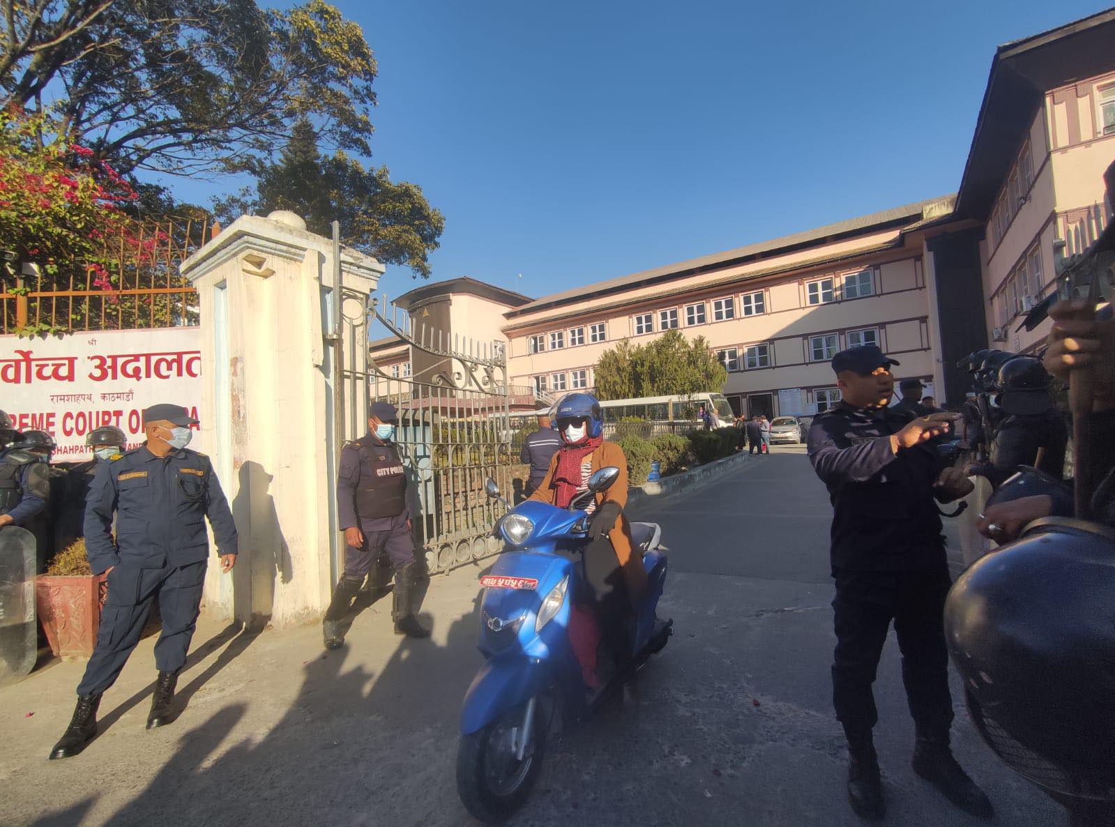 काठमाडौँ । उपप्रधान तथा गृहमन्त्री रवि लामिछानेविरुद्ध मुद्दाको फैसला सुनाउने तयारीसँगै सर्वोच्च अदालत परिसरमा सुरक्षा व्यवस्था कडा बनाइएको छ । लामिछानेको नागरिकताको वैधतामा प्रश्न उठाउँदै दायर रिटमाथि शुक्रबार सुनुवाइ सकिएसँगै सर्वोच्च परिसरमा सुरक्षा व्यवस्था कडा बनाइएको हो । कामु प्रधानन्यायाधीश हरिकृष्ण कार्की, न्यायाधीश विश्वम्भरप्रसाद श्रेष्ठ, ईश्वरप्रसाद खतिवडा, डा आनन्दमोहन भट्टराई, अनिल कुमार सिन्हाको संवैधानिक इजलासमा…