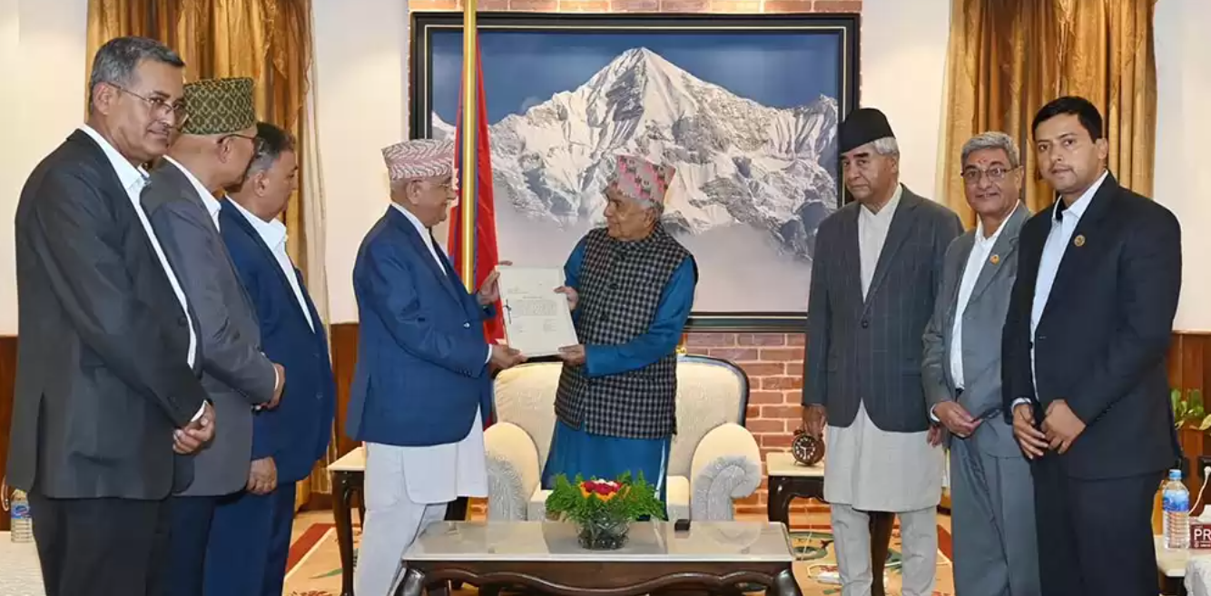 काठमाडौँ । नेकपा एमाले अध्यक्ष केपी शर्मा ओलीले प्रधानमन्त्रीमा दाबी पेस गरेका छन् । राष्ट्रपति रामचन्द्र पौडेलले नेपालको संविधानको धारा ७६ को उपधारा (२) बमोजिम प्रधानमन्त्री पदका लागि दाबी पेस गर्न आह्वान गरेलगत्तै ओलीले नेपाली कांग्रेसको समर्थनमा प्रधानमन्त्रीको दाबी पेस गरेका हुन्। दाबी पेस गर्न एमाले अध्यक्ष ओली, कांग्रेस सभापति शेरबहादुर देउवा, कांग्रेस प्रमुख सचेतक…