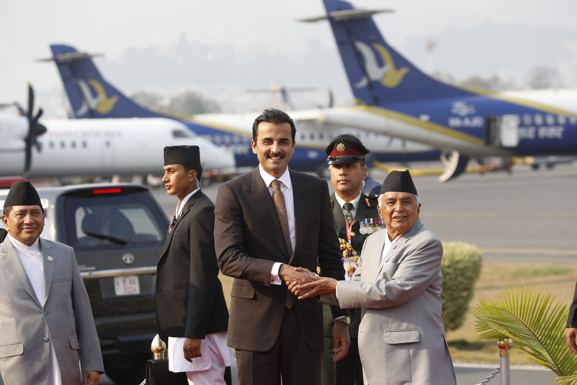 काठमाडौं । कतारका राजा अमिर शेख तमिम बिन हमाद अल थानी काठमाडौं आइपुगेका छन्। राष्ट्रपति रामचन्द्र पौडेलको निमन्त्रणामा दुई दिने नेपाल भ्रमणमा आएका थानी मंगलबार दिउँसो पौने४ बजेतिर त्रिभुवन अन्तर्राष्ट्रिय विमानस्थलमा अवतरण गरेका हुन्। उनलाई विमानस्थलमा राष्ट्रपति रामचन्द्र पौडेलले स्वागत गरेका छन्। दक्षिण एसियाको भ्रमणमा रहेका कतारी अमिर बंगलादेशबाट सीधै काठमाडौंस्थित त्रिभुवन विमानस्थल ओर्लिएका हुन्।…