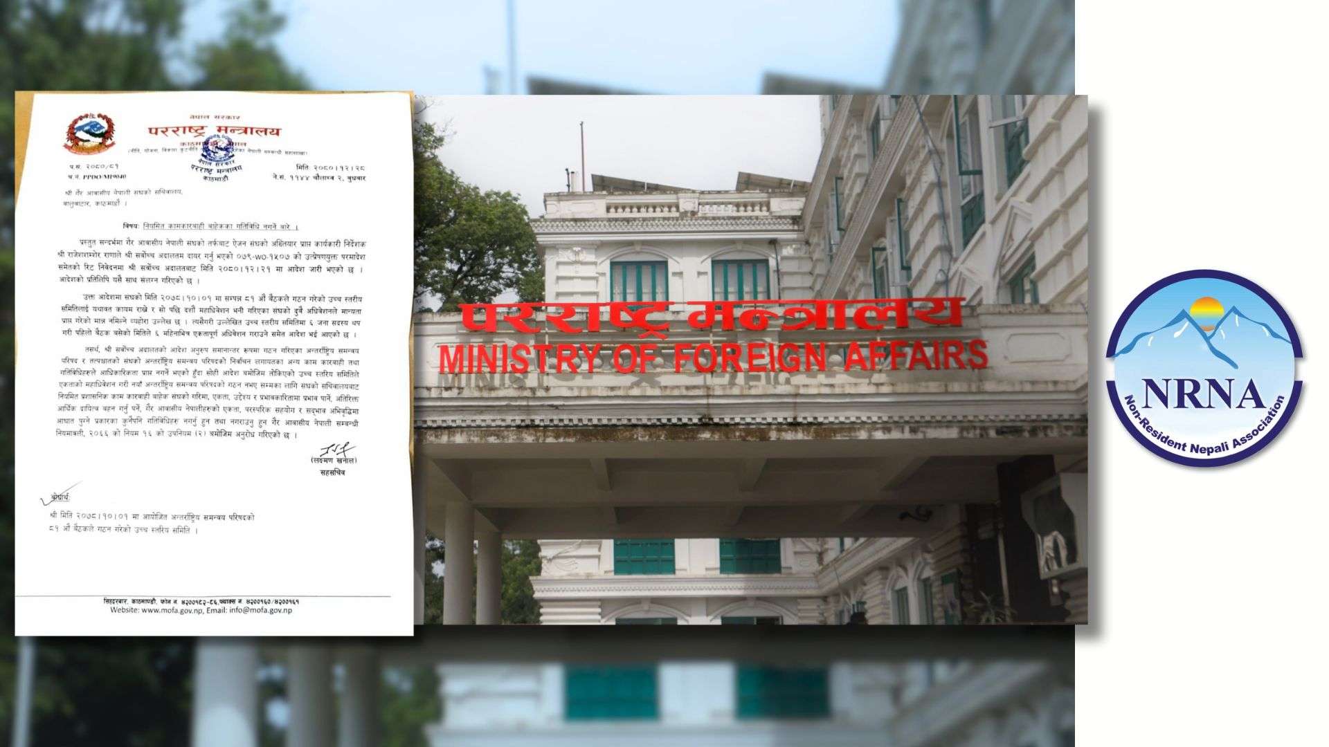 काठमाडौं । सरकारले गैरआवासीय नेपाली संघ (एनआरएनए) को नियमित बाहेकका कामकारबाही गर्न रोक लगाएको छ। परराष्ट्र मन्त्रालयले एक पत्र लेख्दै सर्वोच्च अदालतकोको फैसलाअनुसार नयाँ अन्तर्राष्ट्रिय समन्वय परिषदको गठन नभएसम्मका लागि संघको सचिवालयबाट नियमित प्रशासनिक काम कारवाही बाहेक अन्य कामकारबाही गर्न रोक लगाएको हो। मन्त्रालयले संघको गरिमा, एकता, उद्देश्य र प्रभावकारितामा प्रभाव पार्ने, अतिरिक्त आर्थिक दायित्व…