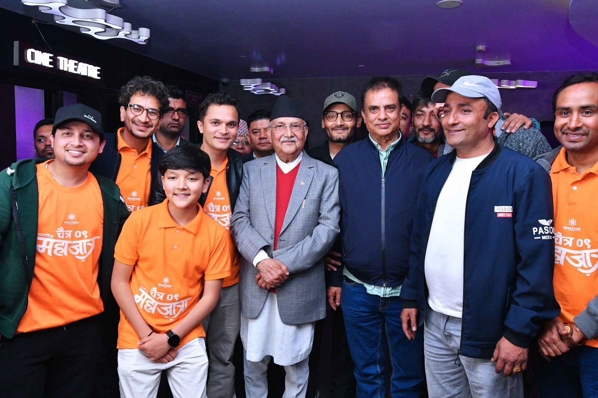 काठमाडौं । नेपाल कम्युनिष्ट पार्टी (एमाले) का अध्यक्ष तथा पूर्वप्रधानमन्त्री केपी शर्मा ओलीले श्रीमति राधिका शाक्यसहित सोमबार बेलुका फिल्म ‘महाजात्रा’ हेरेका छन्। सुन्धारास्थित सिने डी सेफमा फिल्म हेरेपछि उनले फिल्मलाई १० नम्बर मा ९।५ नम्बर दिए। उनले फिल्मलाई १० मा १० अङ्क दिन केही राजनीतिका विषयले रोकेको बताए। ‘फिल्म राम्रो बन्न सन्देश दिने कथा र…