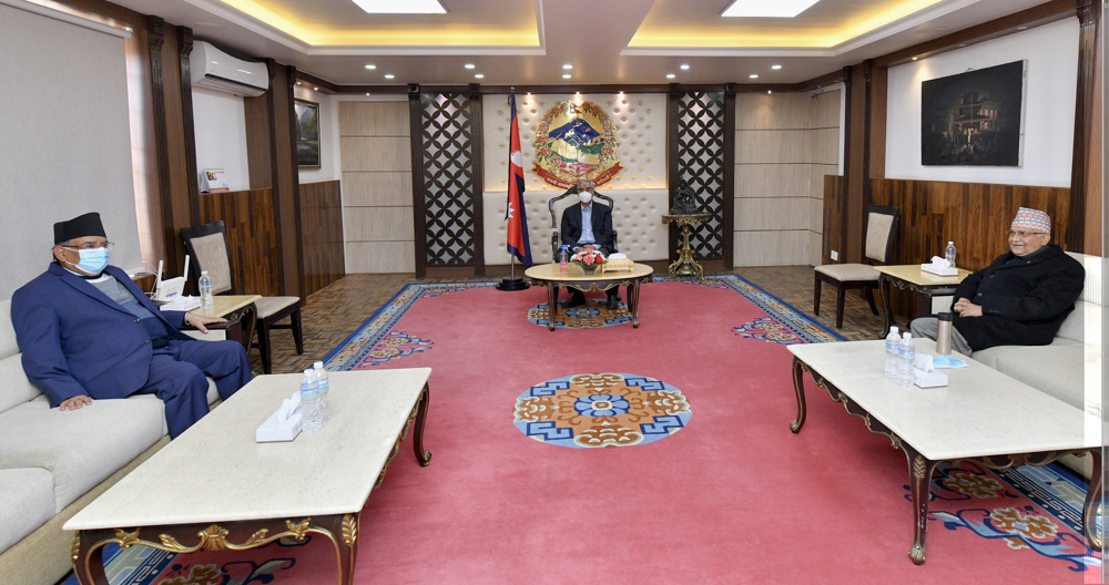 काठमाडौं ।प्रमुख प्रतिपक्षी दल नेकपा एमालेका अध्यक्ष केपी शर्मा ओलीसँग सत्तारुढ गठबन्धनका शीर्ष नेताहरुको बैठक बालुवाटारमा सकिएको छ । प्रधानमन्त्री शेरबहादुर देउवाले संसद सुचारु गराउने विषय, एमसीसीलाई संसदमा लैजाने विषय लगायत समसामयिक राजनीतिमा छलफल गर्न प्रतिपक्षी दलका अध्यक्ष केपी शर्मा ओलीलाई बालुवाटार बोलाउनुभएको थियो । छलफलमा सहभागी हुन पूर्वप्रधानमन्त्री केपी शर्मा ओलीसँगै गएका महासचिव शंकर…