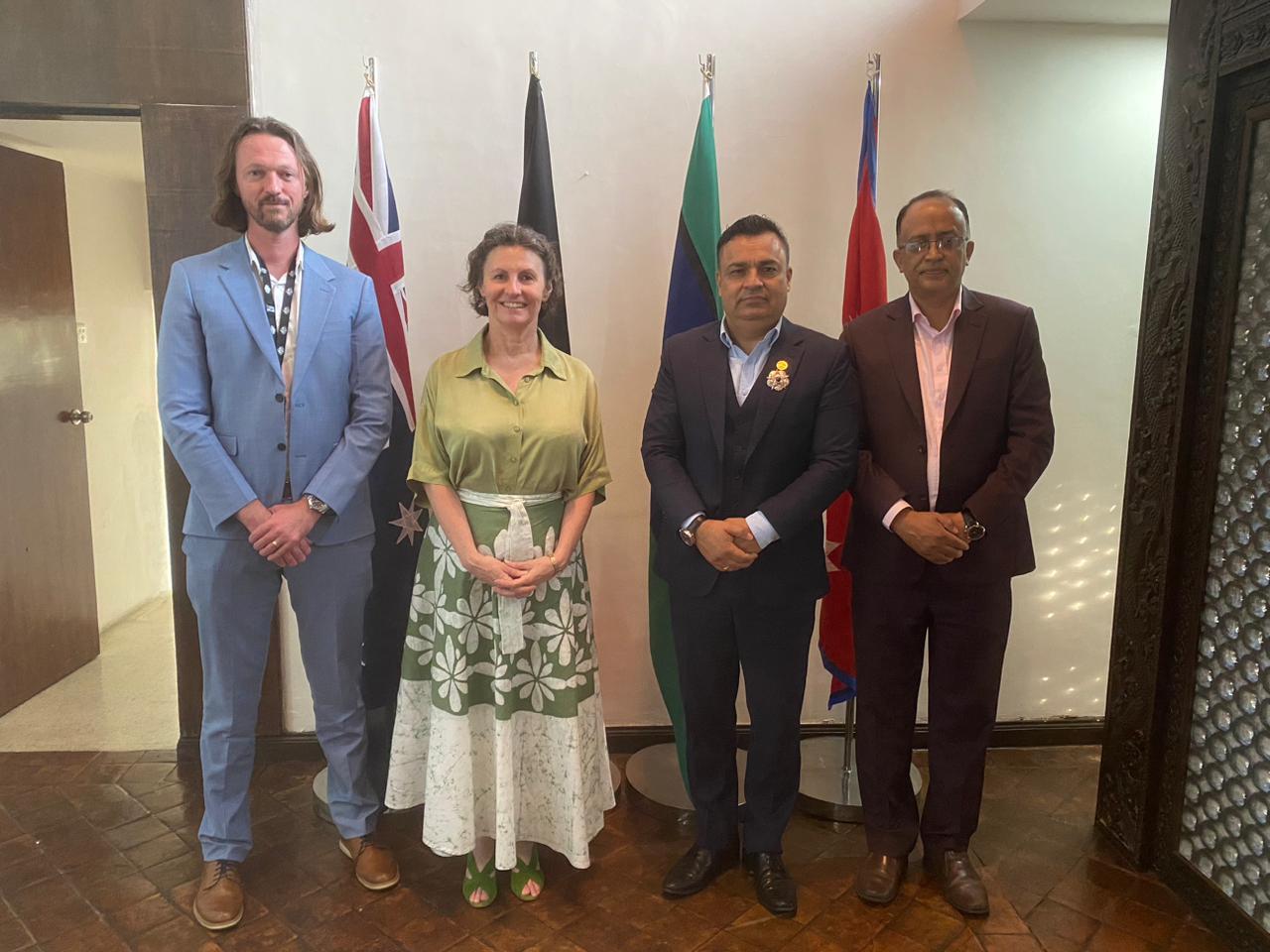 काठमाडौं । गैरआवासीय नेपाली संघका अध्यक्ष डा. बद्री केसीले नेपालका लागि अष्ट्रेलियाकी राजदूत लियन जोन्स्टनसँग काठमाडौंमा भेट गरेका छन् । भर्खरै नियुक्त भएकी राजदूतले हाल नेपाली समाजका विविध नेतृत्वसँग भेट गरिरहेकी छिन् । यसैक्रममा एनआरएन नेतृत्वसँग कुराकानी भएको हो । काठमाडौँस्थित अस्ट्रेलियाली दूतावासमा भएको भेटमा अष्ट्रेलियामा नेपाली विद्यार्थी जाँदा नेपालमा नै उनीहरुलाई जीवनशैली, पढाई, काम…