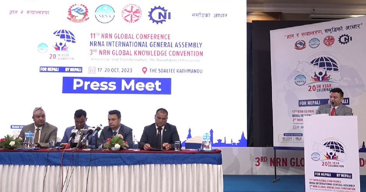 काठमाडौँ । गैरआवासीय नेपाली सङ्घ (एनआरएनए)को विश्व सम्मेलन एवं ११औँ अन्तर्राष्ट्रिय महाधिवेशन भोलि असोज ३० देखि कत्तिक ३ गते (अक्टोबर १७ देखि २० तारिख) सम्म काठमाडौँमा आयोजना हुँदैछ। एघारौँ अन्तर्राष्ट्रिय महाधिवेशन तथा तेस्रो ज्ञान सम्मेलनको सम्पूर्ण तयारी पूरा भएको एनआरएनएले आज पत्रकार सम्मेलन गरी जानकारी दिएको छ। सम्मेलनको राष्ट्रपति रामचन्द्र पौडेलले उद्घाटन गर्नुहुनेछ भने कात्तिक…
