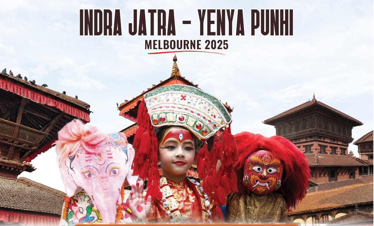मेलबर्न, अष्ट्रेलिया ।अष्ट्रेलियाको भिक्टोरिया राज्यस्थित मेलबर्नमा पहिलो पटक इन्द्र जात्रा विशेष उल्लासका साथ मनाइने भएको छ। आगामी शनिबार ६ सेप्टेम्बर २०२५ मा १०० डंकन्स लेन, डिगर्स रेष्टस्थित नेपाली बहुसांस्कृतिक केन्द्रमा आयोजना हुने यस पर्वमा मेलबर्नमै निर्माण गरिएको कुमारी रथ, ६ फिट अग्लो श्वेत भैरवको प्रतिमा, लाखे, पुलु किसि, धिमे बाजागाजा लगायतका सांस्कृतिक आकर्षण प्रस्तुत गरिने…
