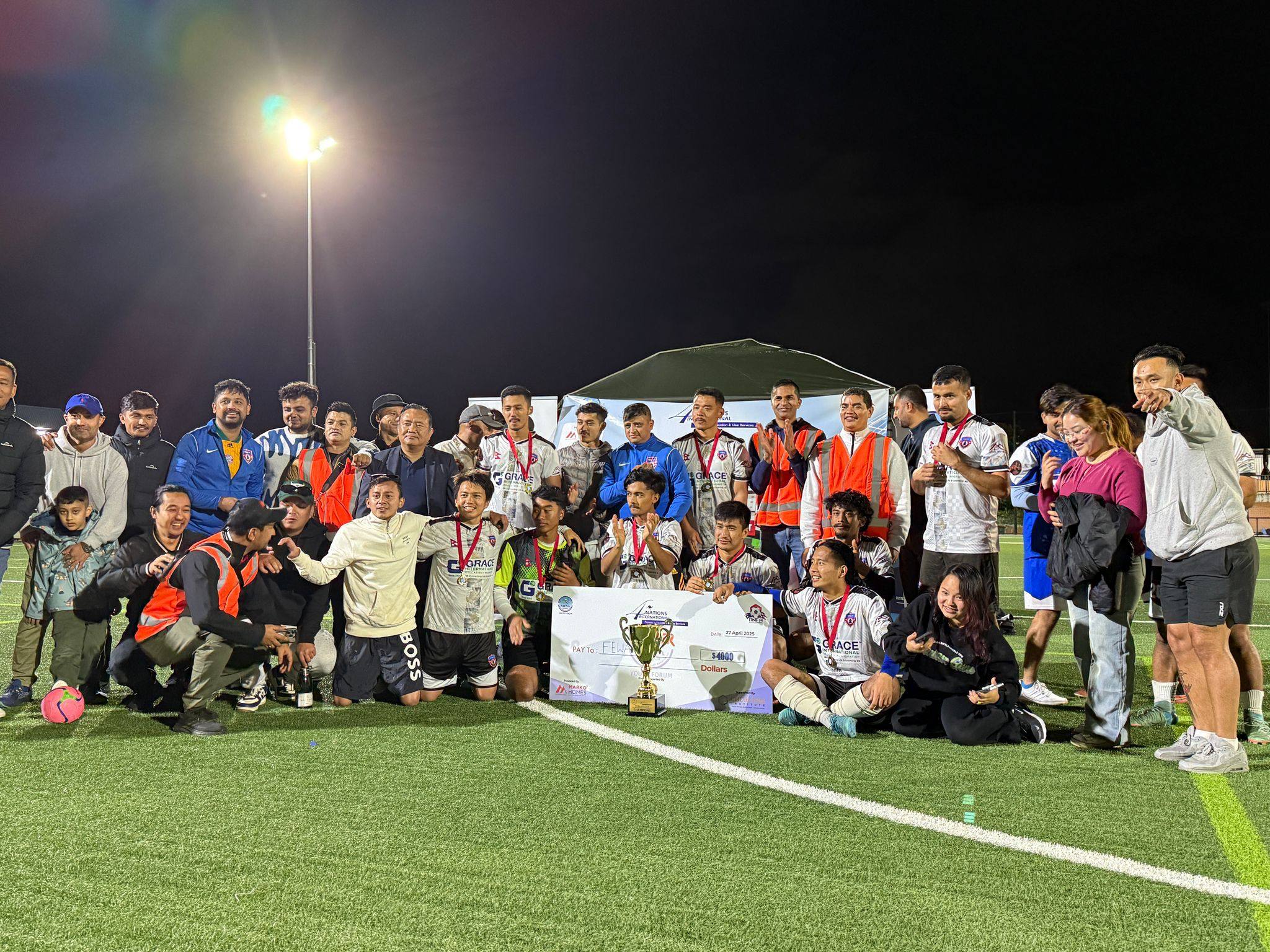 सिड्नी, अष्ट्रेलिया ।गैरआवासीय नेपाली संघ अष्ट्रेलिया युथ फोरमको आयोजनामा भएको एनआरएन कप फुटबलको उपाधि फेवा फुटलब क्लबले जितेको छ । फाईनलमा सेन्टजर्ज नेप्लीज फुटबल क्लबलाई पराजित गर्दै फेवाले उपाधि हात पारेको हो । निकै प्रतिस्पर्धात्मक फाईनल खेलमा टाईब्रेकरमा पाँचका विरुद्ध ६ गोलले फेवाले उपाधि जितेको हो । कूल २४ टिमको सहभागिता रहेको प्रतियोगितामा एक टिममा…